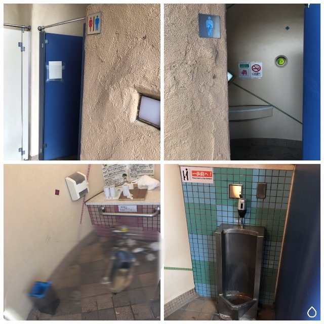男子トイレには小便器2つ、他に多目的トイレがありましたが修理中で使用禁止の張り紙がされていました。