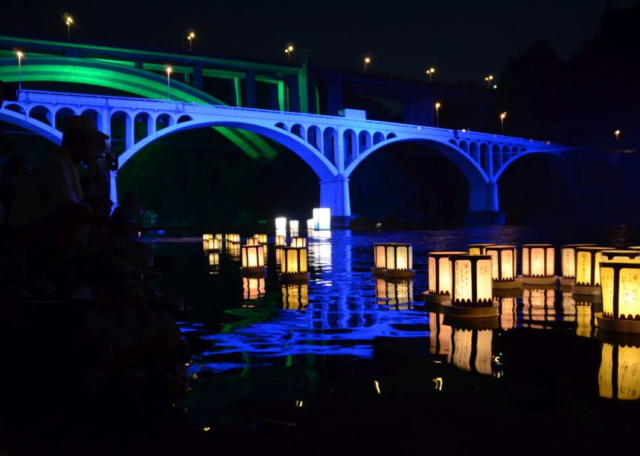 夏には灯篭流しやライトアップもおこなわれています。